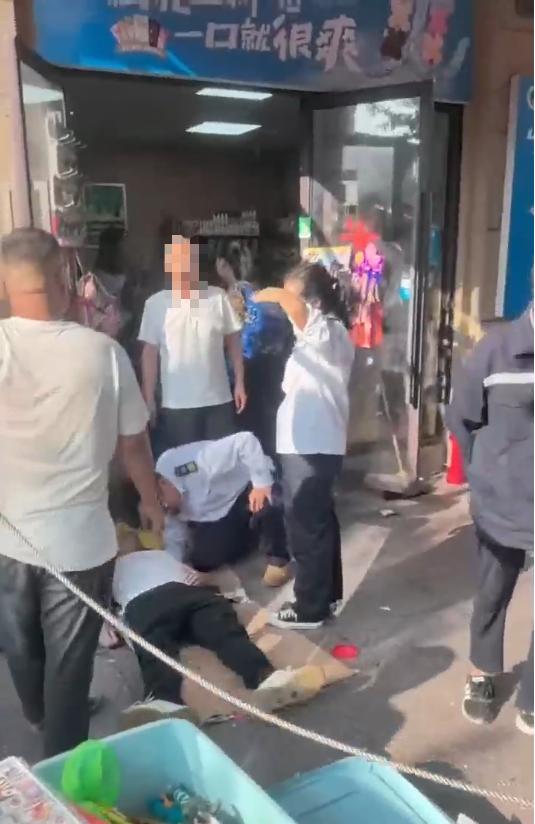 商户表示,砸中了3个人,“有一个男子坐在那,可能砸到他了,还有一个女孩,另外还有一个男孩在那哭。”
