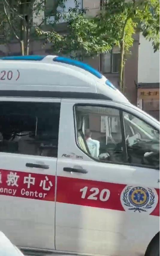 现场视频显示,有120急救车赶到现场,医护人员在查看一名倒地的受伤男子,现场围观者中有不少是背着书包的学生。
